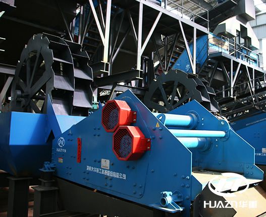 開采后的河卵石原料進(jìn)入JC顎式破碎機(jī),經(jīng)顎式破碎機(jī)粗碎后的石料分為兩部分,粒度小的石料直接由YKR圓振動篩篩分,篩分后進(jìn)入XL螺旋砂石洗砂機(jī)進(jìn)行洗砂,然后洗干凈的石料再由ZKR振動篩篩分,然后進(jìn)入洗砂回收裝置;經(jīng)JC顎式破碎機(jī)粗碎后粒徑較大的石料進(jìn)入HPY圓錐破碎機(jī)中碎,中碎后的石料進(jìn)入PLS立式?jīng)_擊破碎機(jī)(制砂機(jī))進(jìn)行制砂整形,然后由YKR圓振動篩篩分,篩分后進(jìn)入DXS斗輪洗砂機(jī)進(jìn)行洗砂,然后洗干凈的石料再由ZKR振動篩篩分,然后進(jìn)入洗砂回收裝置。為了保證0污水排放,洗砂回收裝置后有污水處理池,再由板框式壓濾機(jī)處理,可實(shí)現(xiàn)100%回收循環(huán)使用。