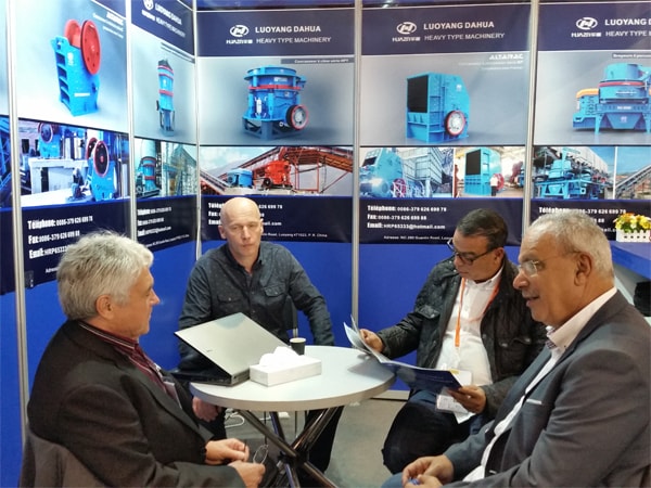在這次為期6天的展會上,參觀的專業(yè)人士絡(luò)繹不絕,我們共發(fā)放產(chǎn)品資料200余套,展會上我公司共接待來訪客戶200余人,在展會宣傳和交流中客戶對我們推出的具有法國基因的C系列顎式破碎機和BP系列反擊式破碎機尤其感興趣,其它給料機、圓錐式破碎機、制砂機等也有較多關(guān)注,另因參加此次展會的客商大多數(shù)來自于法國及周邊國家的法語系國家,故我們這次展會也特意邀請我們公司的法國專家路易斯自始至終為我們展會服務(wù),接待來訪很多只講法語的客戶,另外路易斯也邀請了諸多法國的朋友客戶來我們公司的展位參觀交流,通過這次展會,有50多個法國意向客戶,許多客戶都要我們報價,諸多客戶看到洛陽大華和阿特瑞克的合作也很高興,對法國技術(shù)+中國洛陽大華制造也很認可。展會還接待了大約15個北非的客戶(突尼斯、阿爾及利亞、摩洛哥和毛利塔利亞)及10多個非洲客戶(多哥、喀麥隆、象牙海岸和塞內(nèi)加爾)并有詢價,還有一些意大利、塞爾維亞、德國和西班牙客戶等,總之,我們參加這次展會是成功的。