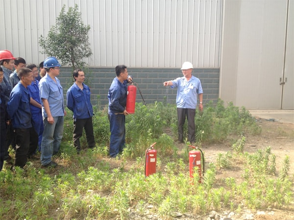 參加演習人員有各部門、各車間新入職員工和各車間班組長及安全員,機加車間主任張自力,金構車間主任鄧興軍、曹永祿,液電車間主任王海濤、張孟喜,制造部長張彥寶等領導都帶頭參加滅火演習。在滅火演練前,公司安全員吳建國首先把怎樣使用滅火器材和滅火注意事項進行講解:一是在日常消防工作中一定要把預防火災放在首位,積極貫徹落實各項防火措施,防患與未然,最大限度減少火災;二是一旦發(fā)生火災要及時有效予以撲滅創(chuàng)造條件,減少火災危害和最大限度減少火災所造成的人身傷亡和財產(chǎn)損失;三是正確使用滅火器材,撲滅火災時,把滅火器上下顛倒幾次,離火點3-4米時,拔出保險銷,一手握噴嘴,一手將壓把壓下,干粉向火的根部噴出,滅火要徹底迅速,不要遺留殘火,以防復燃。