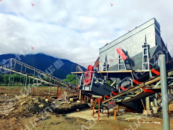 2016年7月,我洛陽大華重機公司在西藏的兩條生產(chǎn)線順利投產(chǎn)。兩條生產(chǎn)線均為鵝卵石破碎生產(chǎn)線,主要由ZSW4211給料機、ASD3625顎破、HPY300圓錐機、3YK1860振動篩、4YK2460振動篩、XL762洗砂機等設(shè)備組成。