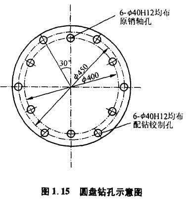 c)對破碎機(jī)轉(zhuǎn)子部的端部圓盤和中間圓盤進(jìn)行改進(jìn),提高錘頭的利用率,相對延長遠(yuǎn)頭的使用壽命。以PC800mm x 800mm型錘式破碎機(jī)為例,可在端部圓盤和中間圓盤上配鉆6個(gè)φ40mm銷軸蝕孔,均布在φ450mm的圓周上,與原銷軸孔錯(cuò)開30°圓心角布置,見圖1.15。把經(jīng)過正反兩次交替使用后不能在原來位置上繼續(xù)工作的空套錘頭、銷軸及間隙竟拆下,與新配站的6個(gè)φ40mm軸孔組裝起來,以保證轉(zhuǎn)子平衡。重新調(diào)整錘頭與篩條、破碎板和篩條與篩條之間的間隙后繼續(xù)使用此時(shí)錘頭頂點(diǎn)位置在φ820mm圓周上,錘頭線速度略高,打擊力略降,但可通過調(diào)整進(jìn)機(jī)物料粒度加以解決。即:將入料粒度由≤120mm調(diào)至≤100mm就可以正常工作。據(jù)介紹,改進(jìn)后錘頭可正反交替使用4次,睡頭壽命延長13d,年錘頭耗用量節(jié)約2/5。最后卸下的“錘頭”,用合金鋼焊條堆焊或整形處理后可繼續(xù)使用。