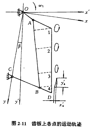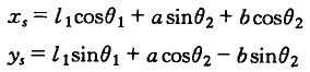 復擺領式破碎機運動分析機構模型如圖2-8所示入點是齒板上的任意點,在直角坐標系xOy中,s點的位移方程為
