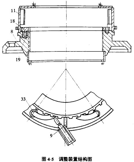 鋸齒形調(diào)整螺紋的潤(rùn)滑是通過(guò)支承環(huán)側(cè)壁卜的注油孔定期向螺紋中壓入黃油。