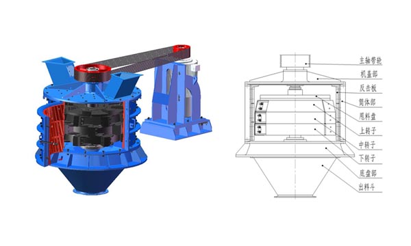 針對(duì)這些疑難問題,我們認(rèn)真分析研究了國內(nèi)外細(xì)碎技術(shù),突破傳統(tǒng)的思維模式束縛,解決了傳統(tǒng)復(fù)合破的存在問題和不足,使立式復(fù)合破碎機(jī)的結(jié)構(gòu)原理和技術(shù)性能有了質(zhì)的飛躍。
