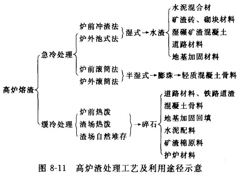 高爐渣主要處理利用途徑如圖8-11所示。