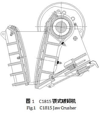顎式破碎機一般用于粗碎各種礦石或巖石,特別是大型的礦山,首先就會選擇大型顎式破碎機。由于顎式破碎機具有結(jié)構(gòu)簡單,工 作可靠,制造容易,維修方便等優(yōu)點[1],得到廣泛的應(yīng)用。在國內(nèi)開發(fā)制造大型顎式破碎機的廠家也寥寥無幾,在行業(yè)內(nèi)公認是比 較難做的,所以很多廠家想做但又不敢涉足。2010年我公司開發(fā)C1815大型顎式破碎機,也是當(dāng)時國內(nèi)最大的顎式破碎機。經(jīng)過研發(fā)制 造、應(yīng)用驗證,實現(xiàn)了節(jié)能降耗的目的,顯著降低了用戶使用成本,同時,也為下一步開發(fā)更大型號顎式破碎機奠定了基礎(chǔ)。