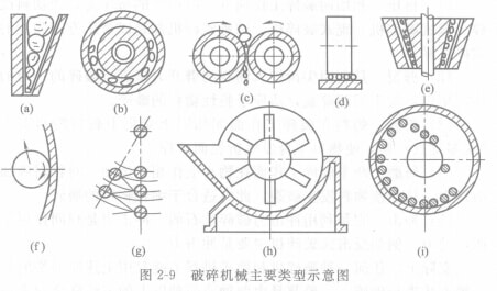 (2)根據(jù)破碎方式、機械的構造特征(動作原理)來劃分,將破碎機械大體分為六類,如圖2-9所示。