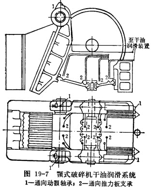 顎式破碎機的潤滑對確保破碎機的長期正常運行具有重要酌意義。復擺領式破碎機的各個潤滑點,包括動領軸承和推力板與肘板間的潤滑都采用干油潤滑。在冬天,如遇干油有凝固可能時,可在其中再加入20%(按重量計算)的汽車潤滑油。根據(jù)運行使用情況、可每1—2天填注油一次,每季度最好換一次潤滑油。