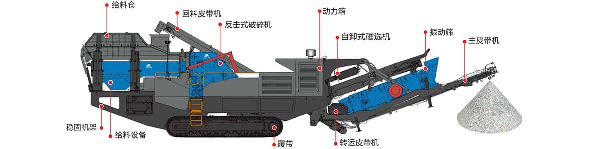 注::①關(guān)于破碎設(shè)備處理能力與石料硬度、給料粒度、出料粒度相關(guān)。②標(biāo)配:主皮帶和尾料皮帶配折疊技術(shù)PLC+顯示器控制、除鐵器、無線遙控控制。③選配:全液壓驅(qū)動、返料系統(tǒng)、除塵器噴淋系統(tǒng)、柴油灌注泵、有線遙控、集中潤滑系統(tǒng)。④鑒于公司技術(shù)不斷更新,技術(shù)參數(shù)變動如不另行通知。